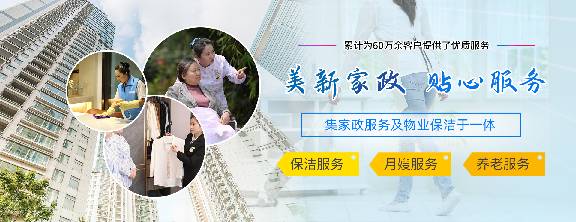 綿陽市美新家政服務(wù)有限公司成立于1994年,注冊資本1000萬元,是集家庭及物業(yè)保潔、物業(yè)管理服務(wù)、月子護理、育嬰護理、養(yǎng)老陪護、家務(wù)料理、生活用品配送、布藝清洗、家政職業(yè)培訓、家政互聯(lián)網(wǎng)科技等為一體的綜合性集團公司。下設(shè)美新職業(yè)培訓學校、美新物業(yè)服務(wù)有限公司。